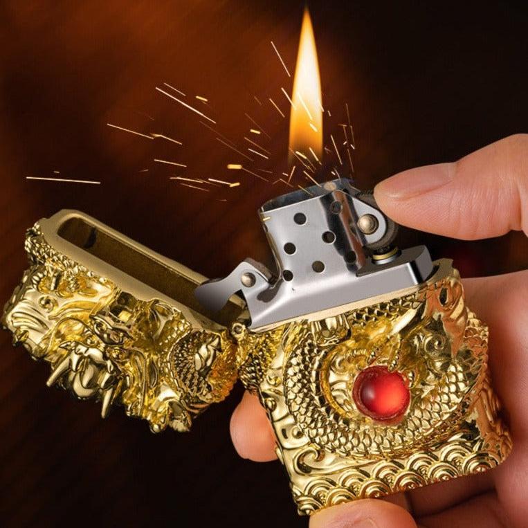 Dragon 3D Retro, një kryevepër e vërtetë për çdo adhurues dragonjsh! Ky cakmak përmban një dizajn mahnitës 3D që sjell në jetë krijesën mitike. Detajet e ndërlikuara dhe përfundimi luksoz prej ari dhe bronzi e bëjnë këtë pjesë një vepër të vërtetë arti. I krijuar nga metali me cilësi të lartë, ky çakmak premium jo vetëm që duket i mahnitshëm, por gjithashtu ndihet i fortë dhe i qëndrueshëm në dorën tuaj.
